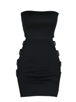 Womens fashion solid color rhinestone hollow tube tops dress — A fitted dress can set off your figure, it has a kind of stretching and heightening effect, this dress is your perfect choice, chic and comfortable; you cant miss these amazing wonderful clothes. This is a good gift for your lover or yourself!