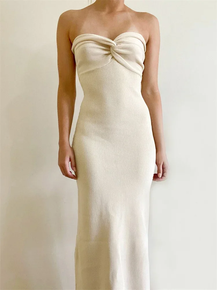 Womens Slim Dress Solid Color Cross Off Shoulder Design Knit Versatile Elegant Cocktail Dress